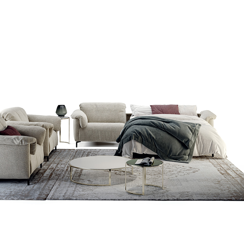 La fonction convertible est équipée d’un matelas de 13 cm d’épaisseur, permettant un véritable couchage et un sommeil de grande qualité, qu’il s’agisse d’un usage occasionnel ou régulier. L’ensemble demeure parfaitement intégré, sans altérer le dessin du canapé ni sa lisibilité.