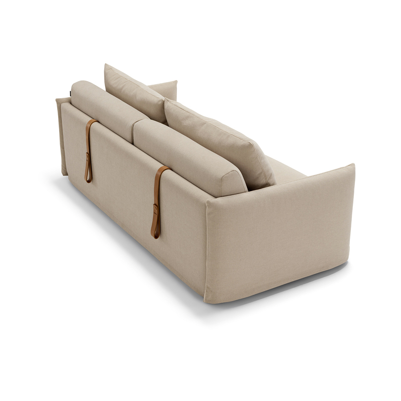 Le confort est à la hauteur de son côté pratique : chaque couchage est équipé d’un matelas haute résilience de 13 cm d’épaisseur (densité 28 kg/m³), habillé d’une housse matelassée en maille élastiquée. Le sommier à lattes assure quant à lui un soutien ferme et homogène, idéal pour un sommeil réparateur. L’assise et les accoudoirs sont garnis de mousse polyuréthane, tandis que les dossiers amovibles en flocons de polyester offrent un moelleux accueillant pour les moments de détente.
