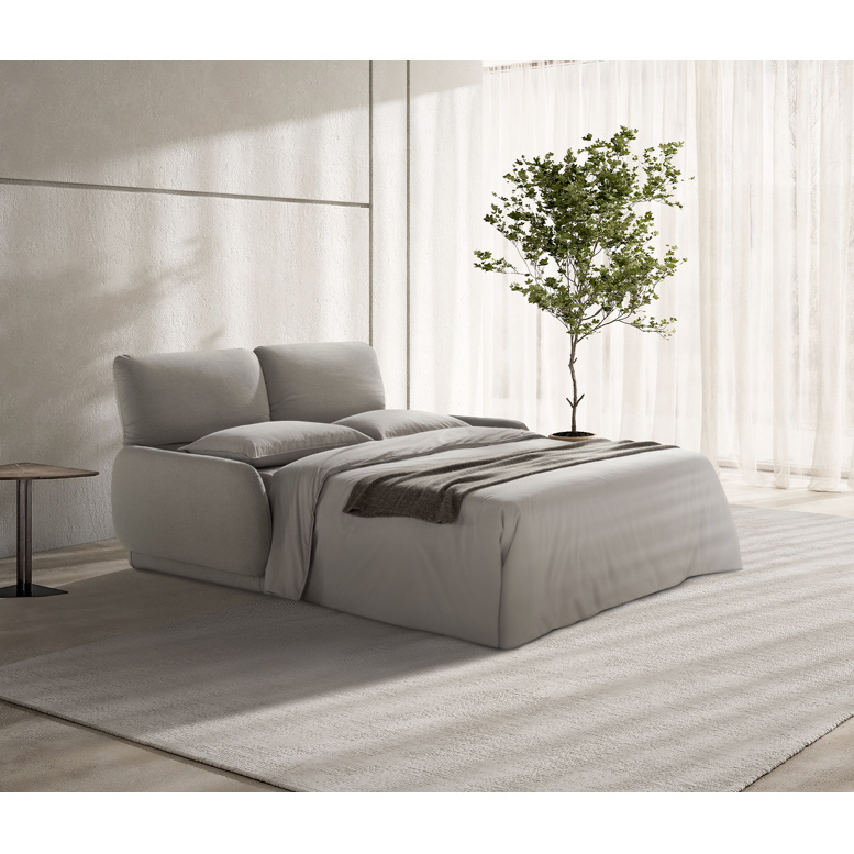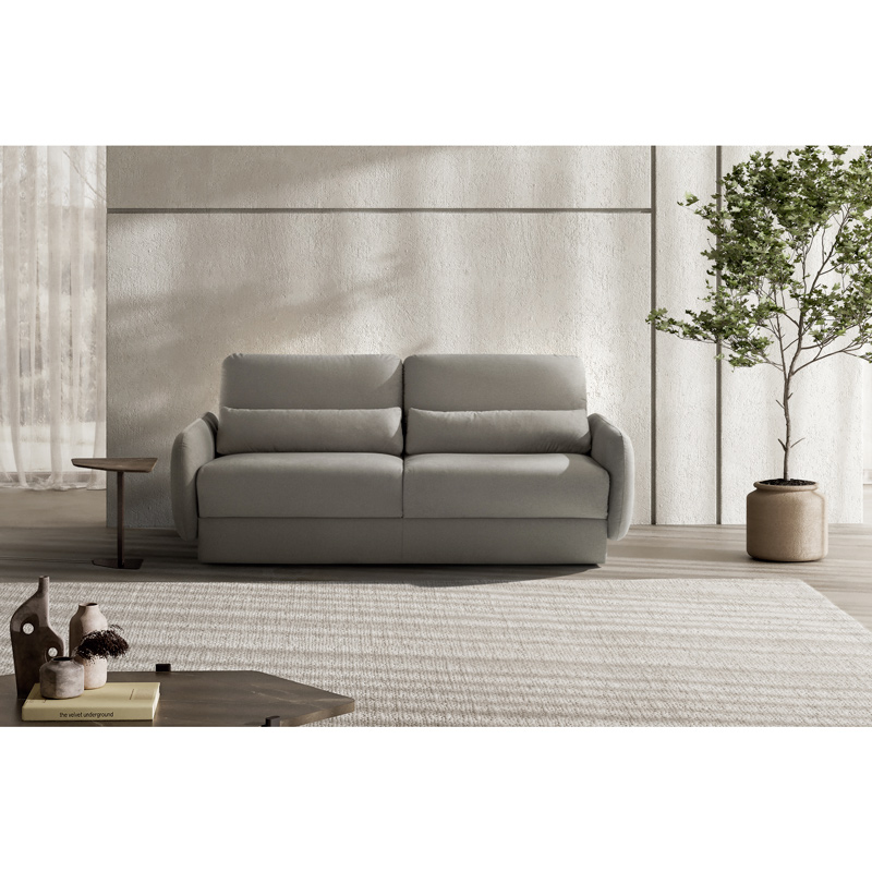 Le matelas en polyuréthane expansé HR de 28 kg/m³, enveloppé d’une housse matelassée en maille élastiquée, garantit un soutien équilibré et une utilisation régulière sans compromis sur le confort. Les dossiers réglables en hauteur se transforment en véritable tête de lit, offrant un confort personnalisé et une posture idéale pour la lecture ou la détente.