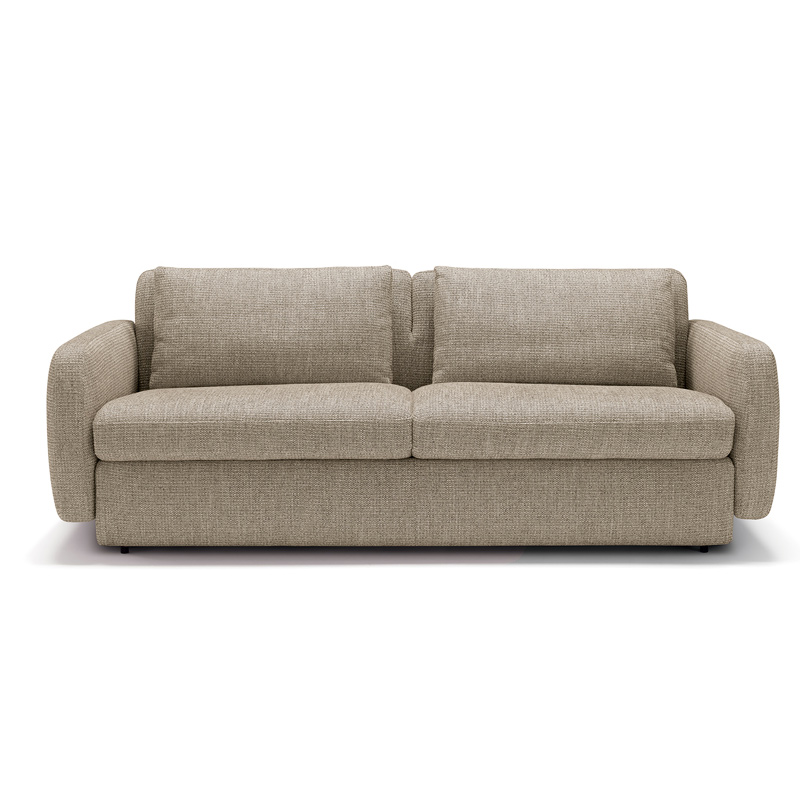 Le canapé convertible Fontainebleau séduit par son design harmonieux et ses finitions minutieuses. Ses accoudoirs légèrement surélevés et arrondis donnent une impression de légèreté, tandis que les coutures soignées témoignent d’un travail artisanal de haute qualité. Le revêtement en tissu de fibres naturelles apporte une touche douce et chaleureuse, agréable au toucher et durable dans le temps.