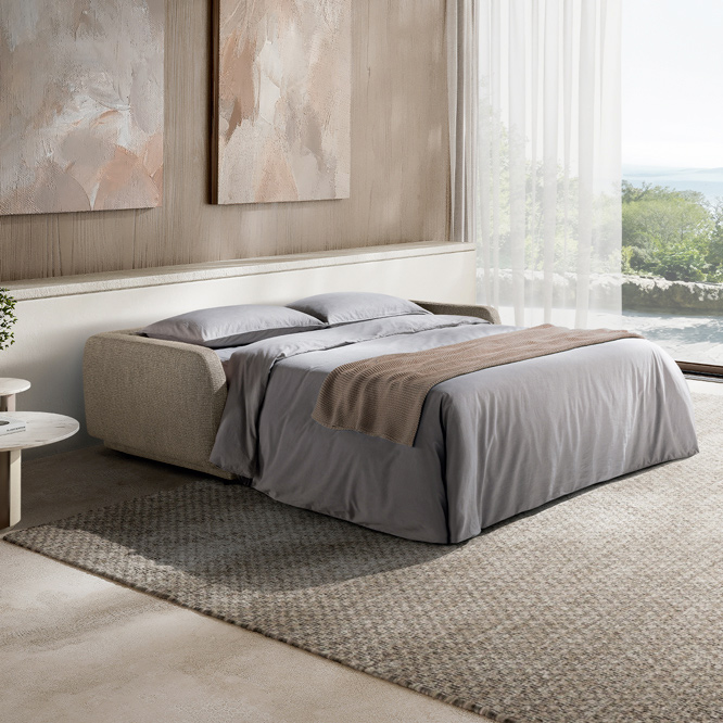 Fruit du savoir-faire italien, le canapé convertible Fontainebleau marie design raffiné, confort quotidien et fonctionnalité intelligente, offrant un meuble polyvalent qui embellit le salon tout en restant pratique.