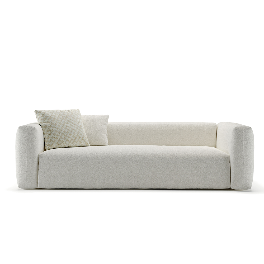 Les accoudoirs, épais et arrondis, participent pleinement à l’identité du modèle. Leur forme généreuse encadre le canapé avec douceur et équilibre, rompant subtilement avec la rigueur géométrique de l’ensemble. Ils accentuent l’aspect accueillant du Grenelle, tout en affirmant son caractère contemporain et maîtrisé.