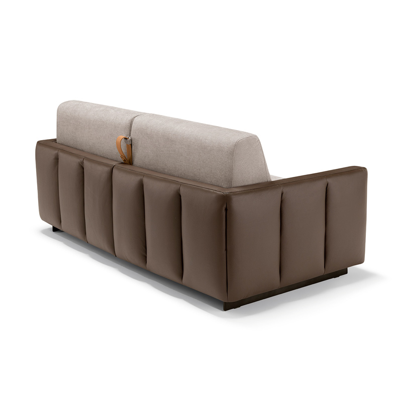 Les coussins du dossier et de l’assise, rembourrés d’une mousse haute densité, garantissent un confort durable, tandis que la base en cuir ornée de coutures verticales apporte une touche de dynamisme et de sophistication. Chaque détail du modèle Rueil respire le soin artisanal et la recherche d’un design intemporel.