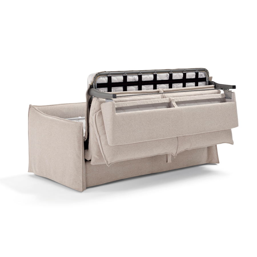 Le canapé convertible Ternes combine confort absolu et douceur visuelle. Grâce à son rembourrage haut de gamme et son esthétique délicate beige sable, il offre une solution de couchage élégante et gain de place parfaitement adaptée aux intérieurs lumineux et épurés.
