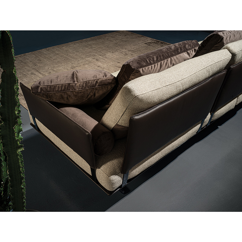 Le canapé d'angle Monaco ne lésine pas avec les finitions : certaines parties de la structure sont teintés en nickel noir et bronze lui conférant une distinction singulière.