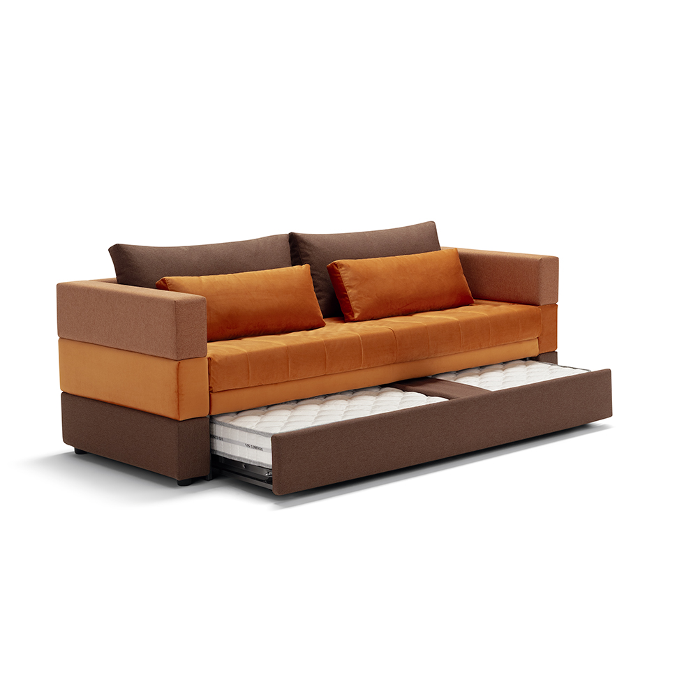 Le canapé lit gigogne Venise combine design expressif, confort généreux et ingénierie fonctionnelle. Grâce à son système gigogne à deux couchages et à son style géométrique aux tons chauds, il offre une solution modulable, chaleureuse et idéale pour les intérieurs contemporains.