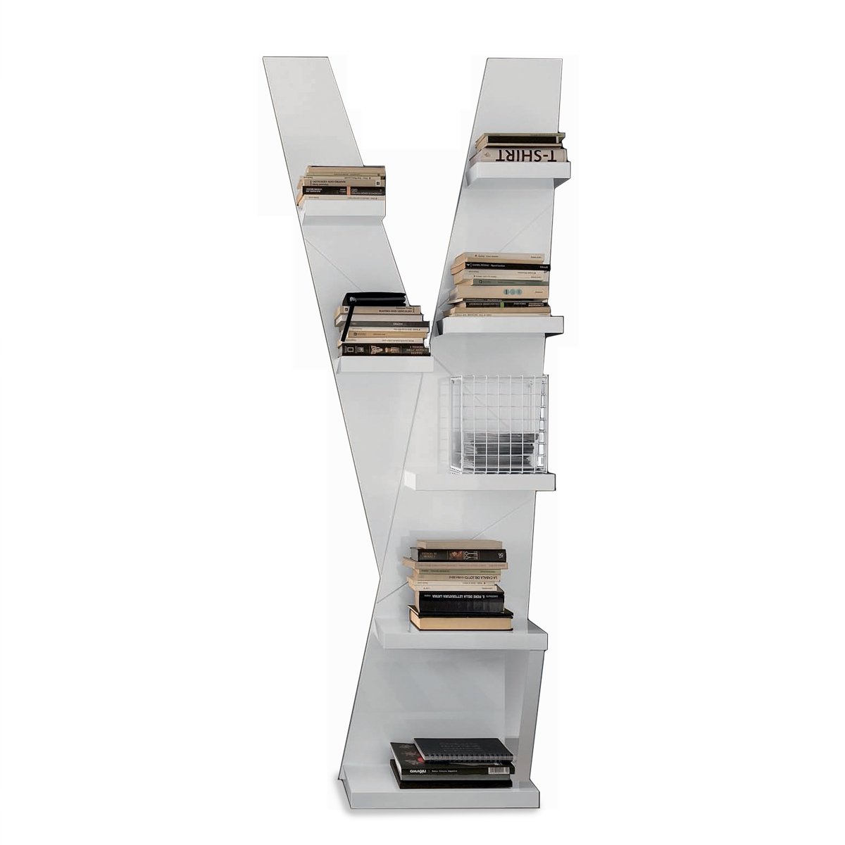 L'étagère Y est en Mdf et se décline en laqué blanc ou noir brillant.